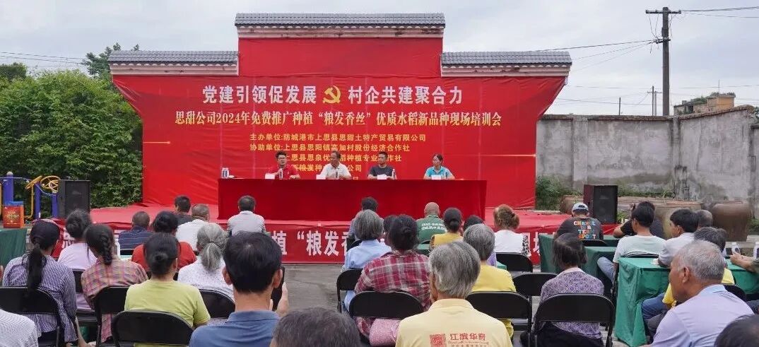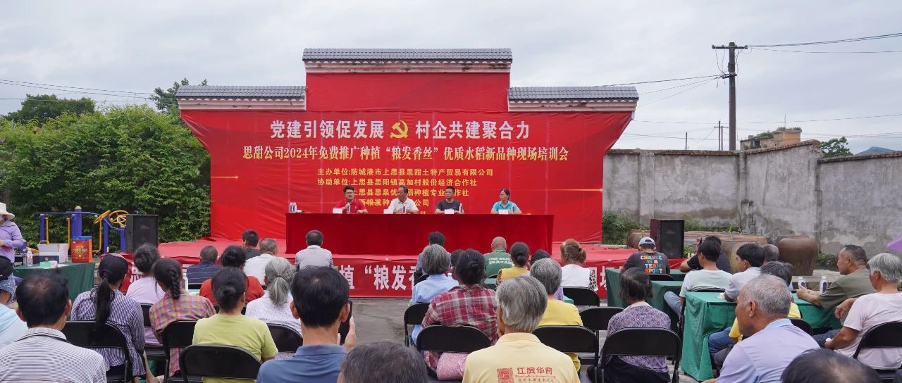 7月2日,由防城港市上思县思甜土特产贸易有限公司主办的2024年免费推广种植“粮发香丝”优质水稻新品种现场培训会在思阳镇高加村委举行,为农户提供技术培训和发放稻种,助力农户有效增产增收,为推动乡村振兴打下坚实基础。