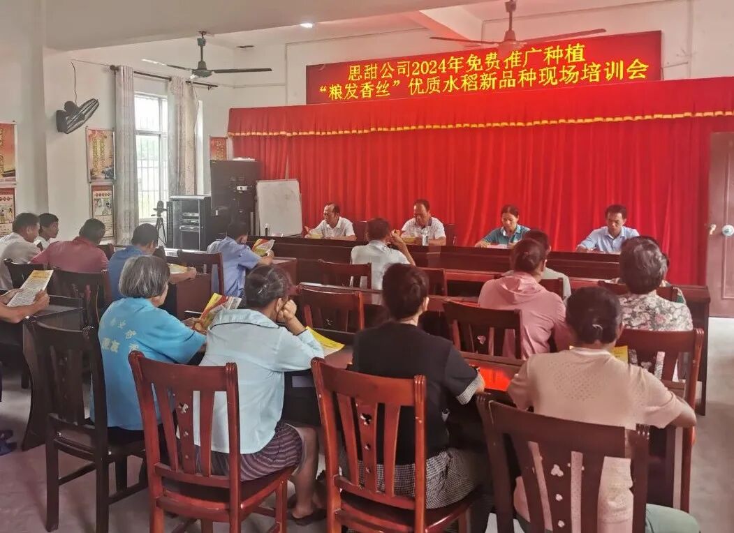 活动现场,思甜公司向到场群众免费发放稻种2679斤,推广种植“万香696”和“粮发香丝”优质水稻新品种565亩。其中,思阳镇高加村441亩,稻种2197.5斤;叫安镇百包村58亩,稻种154.5斤;叫安镇叫安村38亩,稻种190斤;上思县思泉优质稻种植专业合作社28亩,稻种137斤。活动期间,还邀请相关农技人员为村民们进行水稻种植技能培训,丰富全面的培训内容得到农民朋友们一致认可,纷纷表示要以此次培训为契机提升水稻科学种植水平,将所学运用到实际种植工作中去,努力提高水稻产量增加收入。