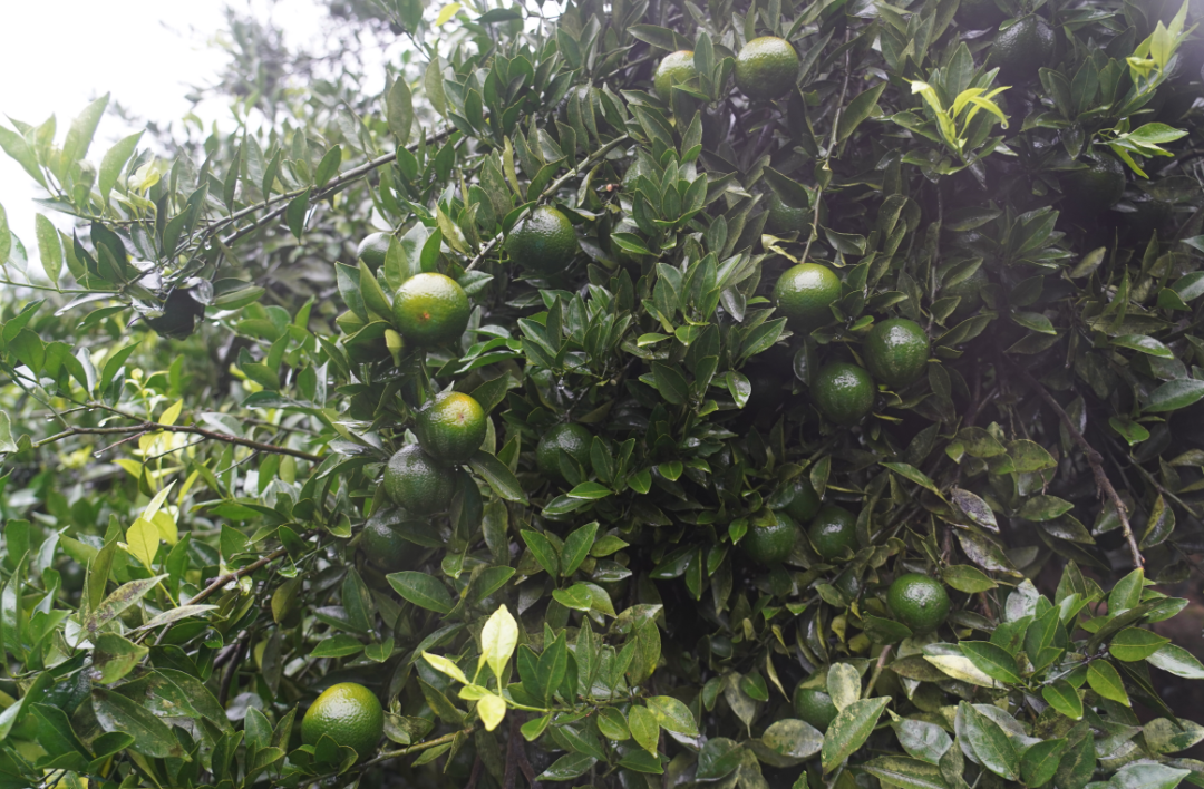 ▲挂在果树上的柑果。